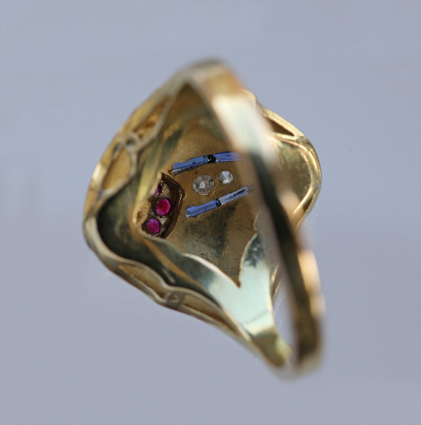 An unusual Belle Époque ring of a Winged Beetle